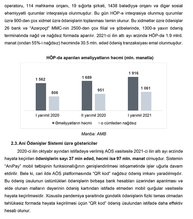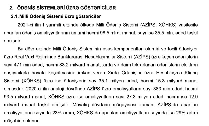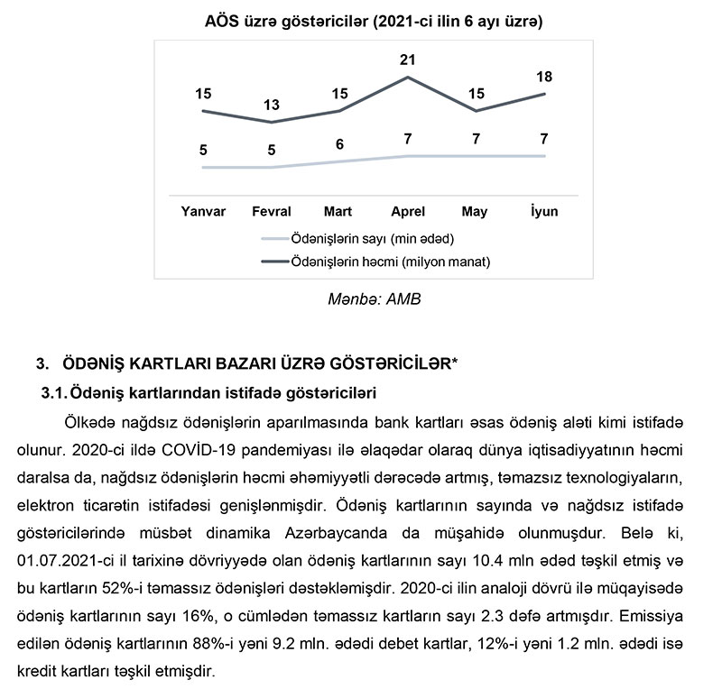Azərbaycan Mərkəzi Bankının açıqladığı Ödəniş Sistemləri üzrə Yarımillik İcmalını dərc edib.