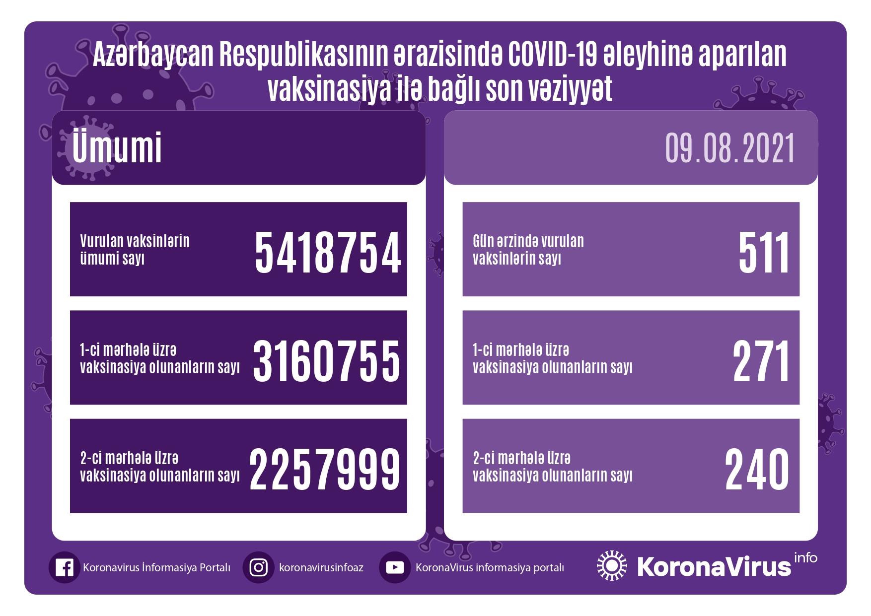 Azərbaycanda bu gün 511 nəfər vaksinasiya olunub.
