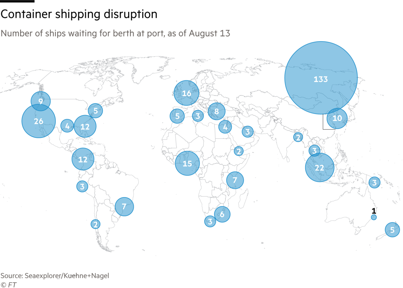 VesselsValue-nun məlumatına görə, COVID-19 səbəbindən bir sıra limanların bağlanmasına görə, hazırda 2,4 milyon ədəd iyirmi futluq konteyner tutumuna malik 350 iri gəmi (o cümlədən 85-i Zhoushan-da) yükünü boşaltmadan gözləməkdədir. Bu isə qlobal konteyner gəmiləri parkının 5%-i deməkdir.