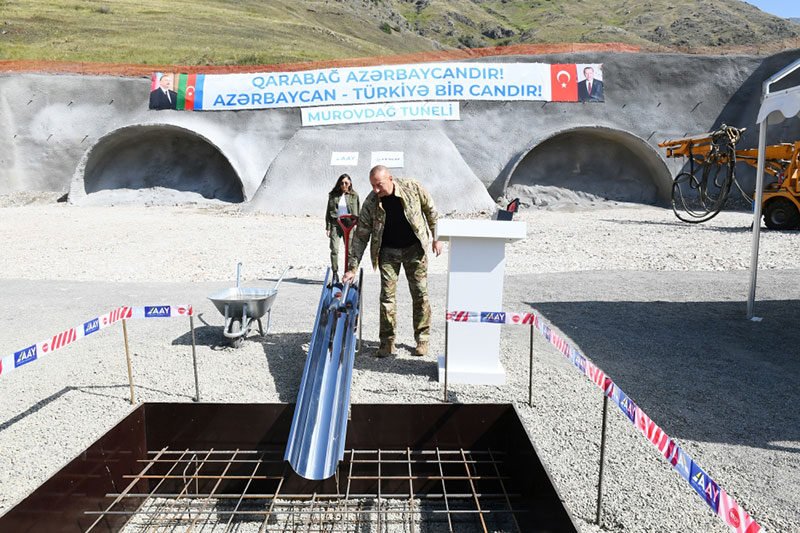 Səfər çərçivəsində dövlətimizin başçısı Kəlbəcər-Laçın avtomobil yolu üzərində inşa olunacaq tunelin və Laçın Beynəlxalq Hava Limanının təməlini qoyub.
