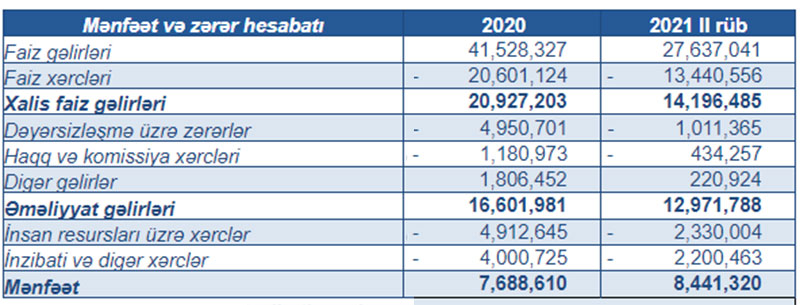 Marja Fonda istinadən xəbər verir ki, cari ilin yanvar-iyun dövründə faiz gəlirləri 27 milyon 637 min manat, digər gəlirlər 221 min manat təşkil edib.