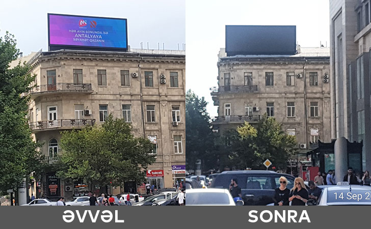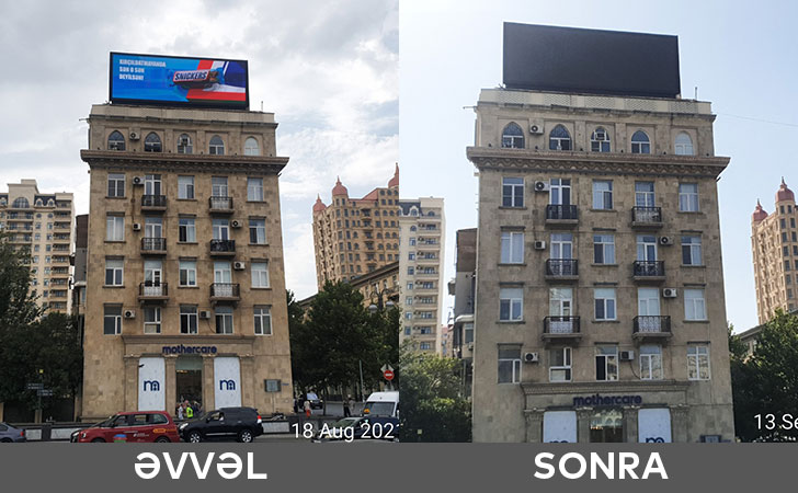 Artıq bir neçə gündür 20 yanvar ərazisində, Yusif Səfərov, Nizami küçəsində (Tarqovı) və Bakının müxtəlif yerlərində şəhərin vizual görüntüsünü korlayan iri monitorların yerləri boş görünür.