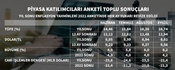 Keçirilmiş sorğuya görə, TCMB pul siyasəti faizini dəyişməyəcəkdir. İl sonuna dair gözlənti isə hazırda 19% səviyyəsində olan faizin 18%-ə düşəcəyi istiqamətindədir. Sorğuda iştirak edənlər Noyabr ayında ilk faiz endirimi qərarının olacağını nəzərdə tuturlar.