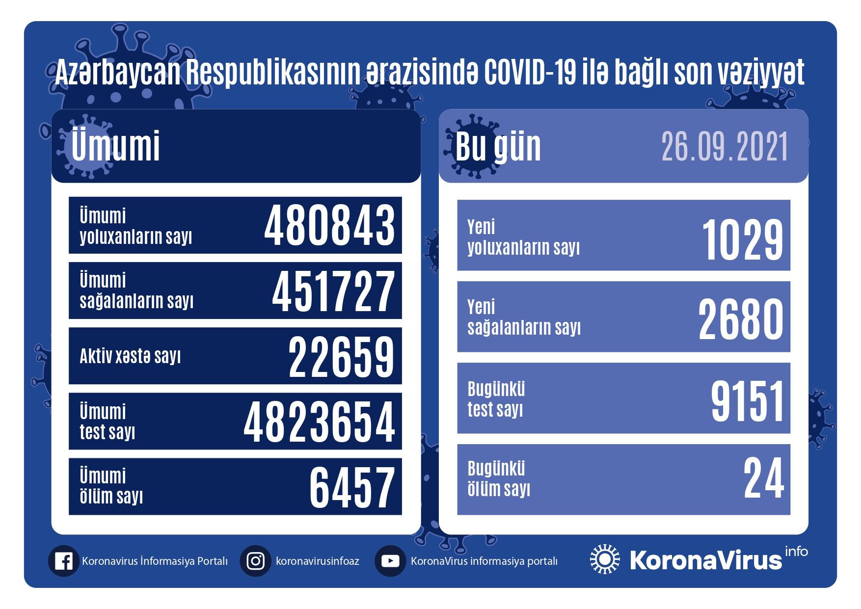 Azərbaycanda koronavirus (COVID-19) infeksiyasına 1 029 yeni yoluxma faktı qeydə alınıb, 2 680 nəfər müalicə olunaraq sağalıb.