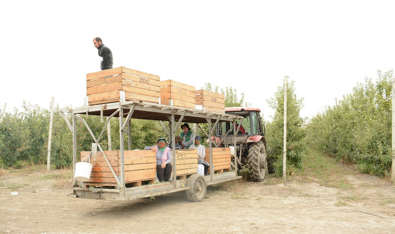 Bağların ilk məhsulu avqust ayında toplanılıb. Tezyetişən “Royal qala” sortlardan bol məhsul əldə olunub. Hazırda isə “Golden”, “Jonagold”, “Granny Smith” sortlarının becərildiyi bağların məhsulu toplanılır.