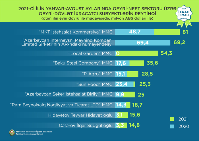"MKT" ixracatçılar arasında 1-ci yerini qoruyur - 81 MİLYON DOLLAR