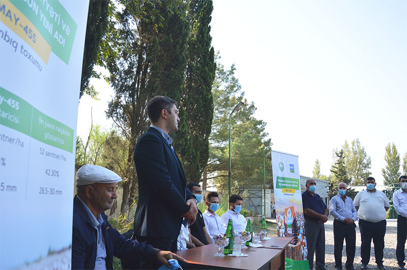 Tədbirdə "May Tohum" şirkətinin nümayəndələriÖmər İgid, Səlçuq SulucvəErsin Gözen iştirak ediblər. Şirkətin nümayəndəsi Ersin Gözen bildirib: "Bu il məhsuldarlığın nəticələrinə əsaslanaraq, qeyd etmək olar ki, bu növ toxumlarda məhsuldarlıq, iqlim şəraitinə davamlılıq, xəstəliklərə və həşaratlara qarşı müqaviməti çox yüksəkdir. May-455 pambığ toxumları digər pambığ sortlarındanyetişmə və suvarma müddəti ilə də fərqlənir. Belə ki, May-455 toxumları 6-8 gün daha tez yetişdiyi üçün 1 dəfə az suvarma edilir. Yarpaq sayı ən yaxın rəqibi ilə müqayisədə daha azdır, bu səbəbdən pestisid çilənməsindən daha yaxşı nəticə əldə edilə bilir və daha az pestisid sərf edilir".