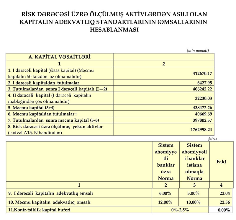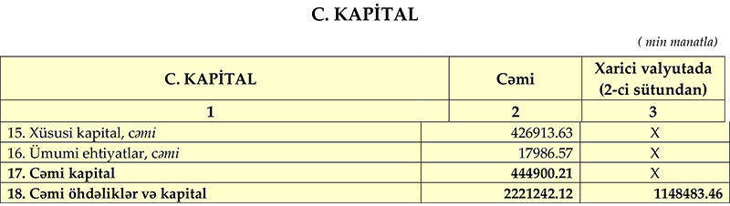 Qeyd edilib ki, Bankın cəmi kapitalı ötən rüb ərzində 8,09 milyon manat artaraq 444 milyon 900 min manata çatıb.