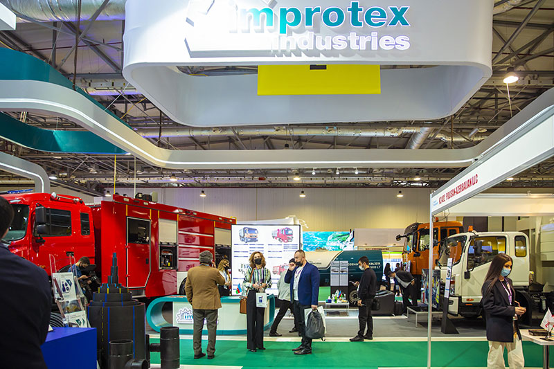 “İmprotex İndustries” stendində işğaldan azad edilmiş ərazilərin bərpası və yenidən qurulmasında istifadə oluna biləcək xüsüsi texnikalar nümayiş olunur. Belə ki, Avropanın qabaqcıl şirkətlərinin və “İmprotex” zavodunun mühəndis heyətinin birgə əməkdaşlığı nəticəsində ərsəyə gələn ən yüksək dünya standartlarına cavab verən, tam yerli istehsal olan yanğınsöndürən, tullantı daşıyan və digər tenikalar ilə sərgi ziyarətçiləri tanış ola bilər: