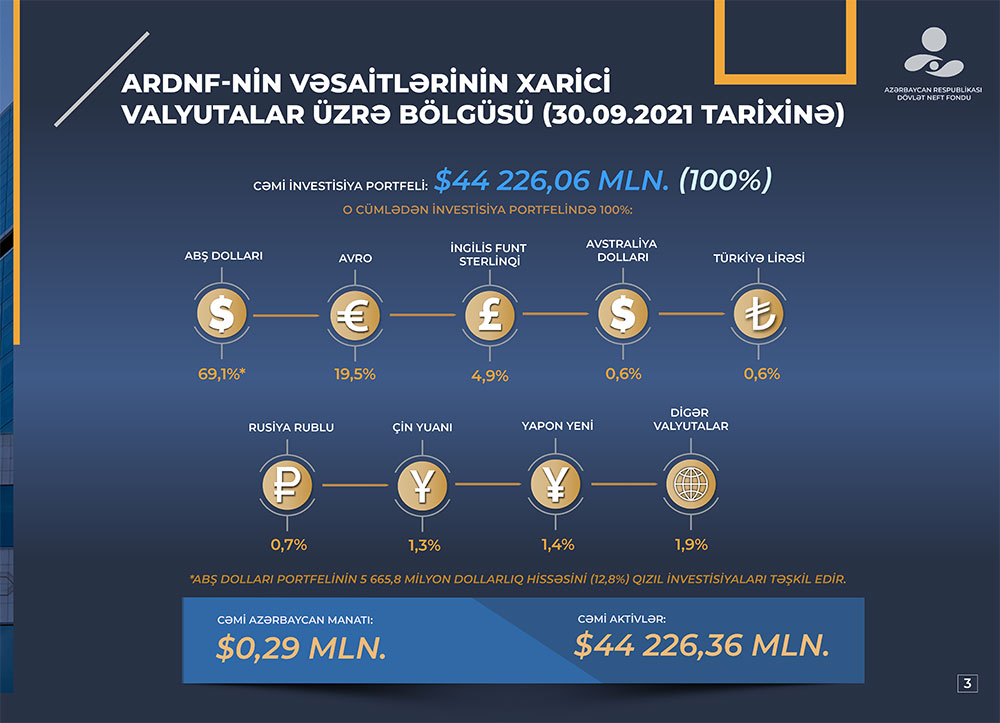 Azərbaycan Respublikası Dövlət Neft Fondunun (ARDNF) 2021-ci ilin 9 ayı üzrə investisiya fəaliyyətinin yekunları açıqlanıb.