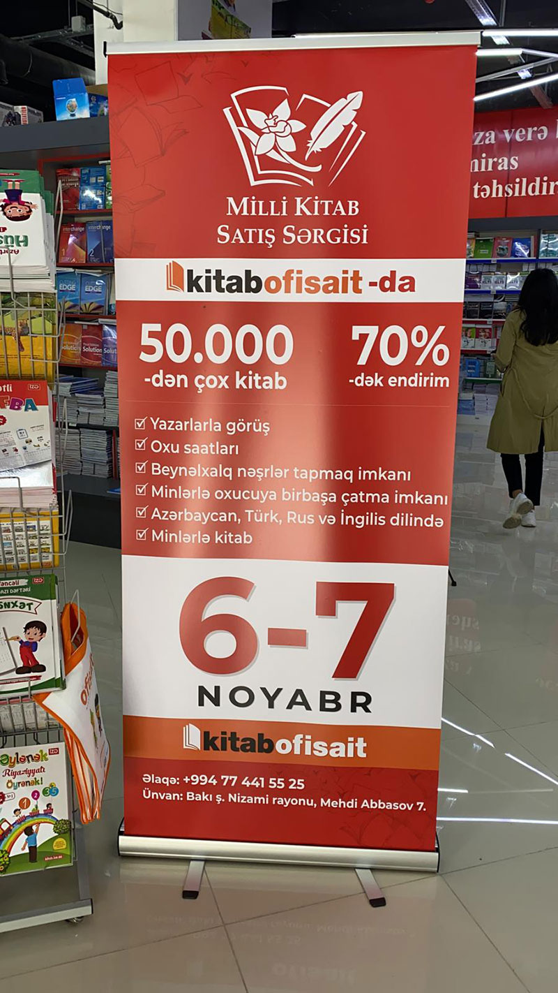 Qeyd edək ki, Milli Kitab Sərgisi davamlı olacaqdır. Belə ki, hər ayın ilk şənbə və bazar günləri "Kitab Ofisait” mağazasında Milli Kitab Sərgisi təşkil ediləcəkdir.