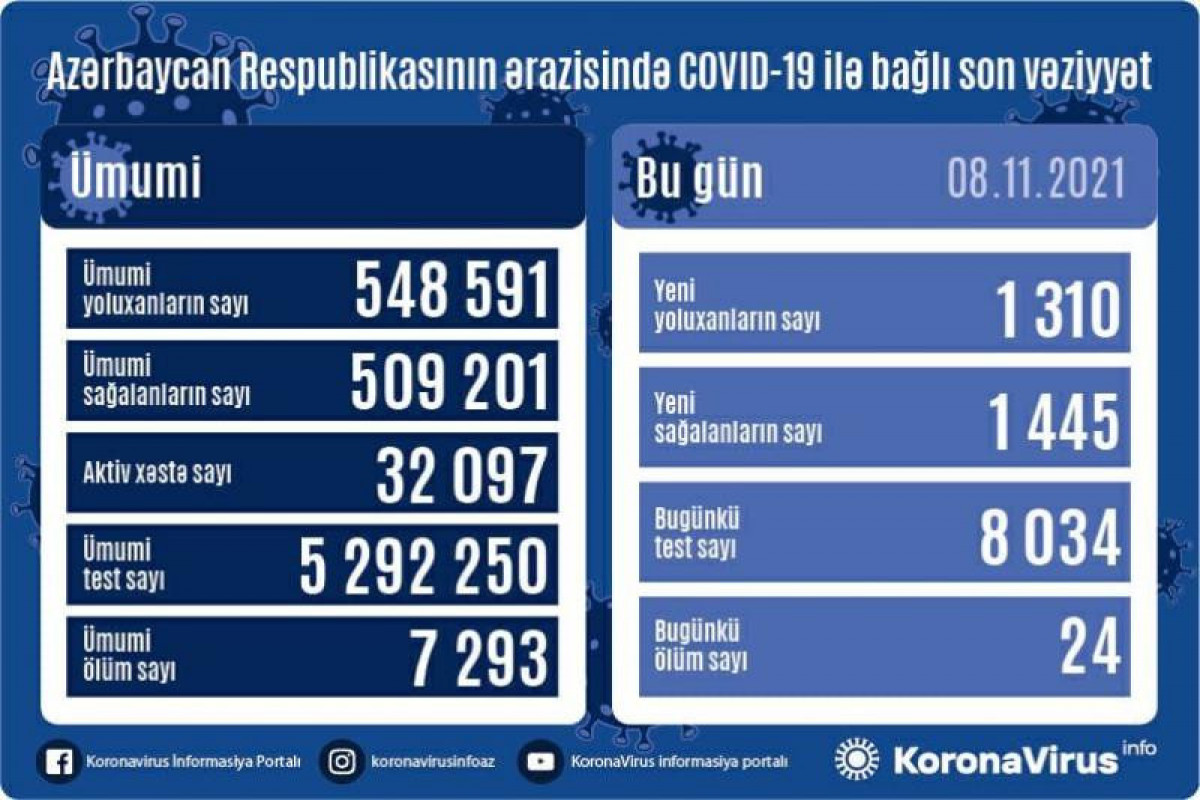 Xatırladaq ki, 07 Noyabr 2021-ci il tarixində 2631 yoluxma faktı və 28 ölüm qeydə alındığı açıqlanmışdı. 13 Dekabr 2020-ci il tarixində açıqlanmış fakt (4451) bugünədək qeydə alınmış ən yüksək günlük yoluxma sayı idi.