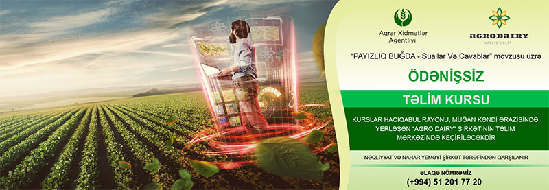 (®) "Agro Dairy” şirkəti kənd təsərrüfatı ilə bağlı silsilə təlimlərə yenidən start verir. İlk ödənişsiz təlim "Payızlıq buğda - suallar və cavablar" mövzusunda olacaqdır.