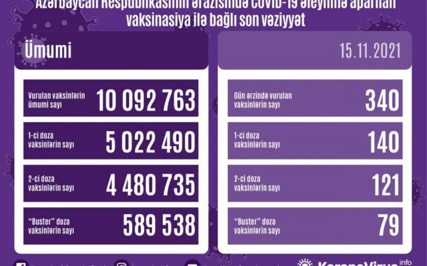 Azərbaycanda son sutkada koronavirus (COVID-19) əleyhinə 340 vaksin vurulub.