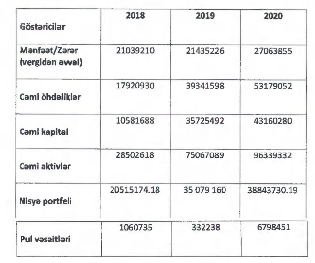 31 Dekabr 2020-ci il tarixində şirkətin nisyə portfeli 38 milyon 844 min manat, ödəmə vaxtı keçmiş (gecikəmiş) kredit portfeli isə 4 milyon 48 min manat təşkil edib. Hər iki portfel 2019-cu illə müqayisədə artıb.