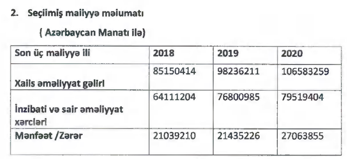 2019-cu ildə 98 milyon 236 min manat təşkil etmiş cəmi xalis əməliyyat gəlirləri 2020-ci ildə 106 milyon 583 min manata yüksəlib.