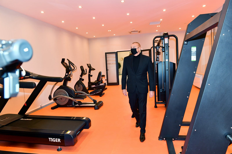 Prezident İlham Əliyev, birinci xanım Mehriban Əliyeva və qızları Leyla Əliyeva kompleksdəki 340 tamaşaçı yerlik üzgüçülük hovuzu, 6600 tamaşaçı yerlik futbol stadionu, Şahmat Mərkəzi və otellə tanış oldular.