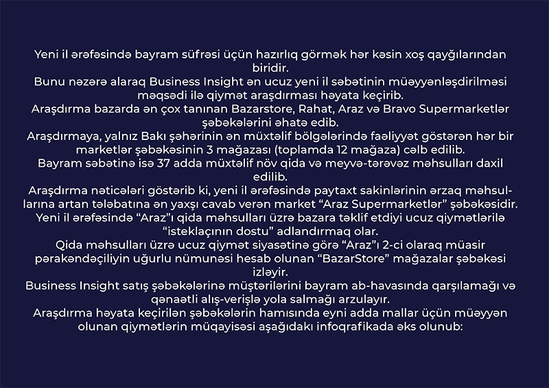 (R) “Business Insight” bayram səbəti üçün ən ucuz Supermarketlər şəbəkəsini müəyyən edib.