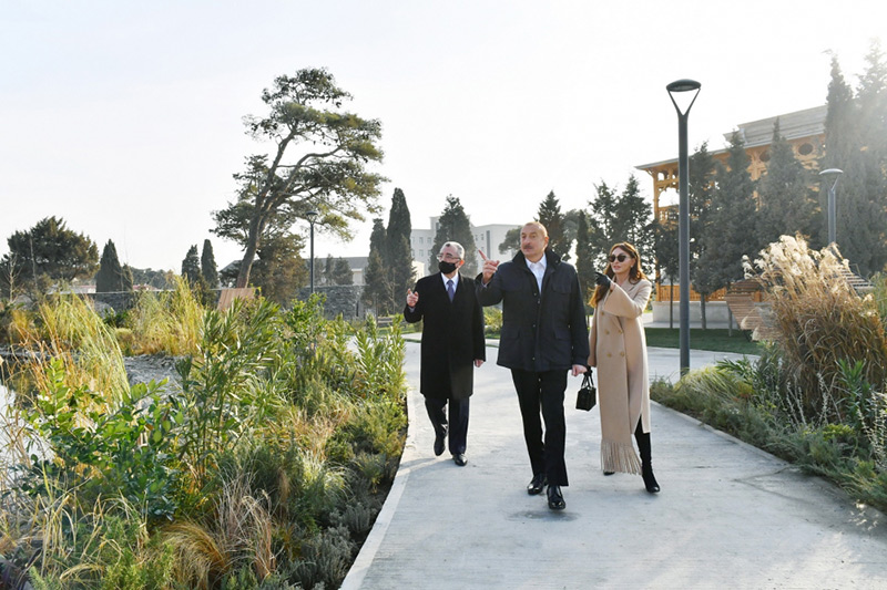Azərbaycan Prezidenti İlham Əliyev və birinci xanım Mehriban Əliyeva “Nizami Gəncəvi” adına mədəniyyət və istirahət parkında əsaslı təmir və yenidənqurmadan sonra yaradılan şəraitlə tanış olublar.