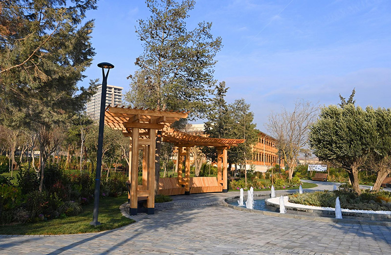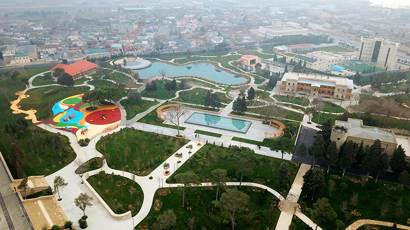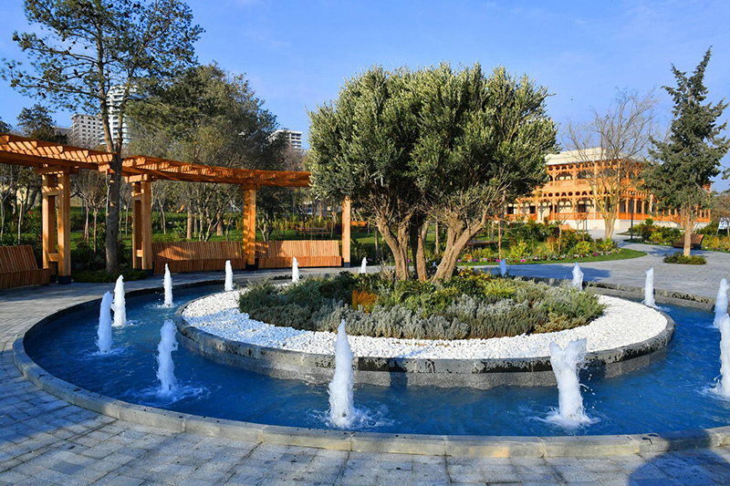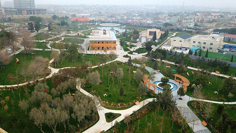 Qeyd edək ki, 1922-ci ildə salınmış parkın şəhərin estetik görünüşünə uyğunlaşdırılması məqsədilə onun ərazisində yerləşən bir və iki mərtəbəli inzibati binalarda əsaslı təmir və yenidənqurma işləri həyata keçirilib, süni göl yaradılıb, amfiteatr və 1938-ci ildən mövcud olan yay kinoteatrı yenidən qurulub, iki fəvvarə kompleksi və müasir tipli işıqlandırma sistemi yaradılıb. Parkda müasir söhbətgahlar, müxtəlif ölçülü oturacaqlar, idman qurğuları quraşdırılıb, uşaq əyləncə kompleksi yaradılıb. Yay kinoteatrının qarşısında çay daşlarından qədim tipli yeni qala divarı tikilib. Parkın ərazisində yaşıllaşdırma işləri görülüb, minlərlə ağac-kol və dekorativ bəzək bitkiləri əkilib.