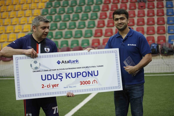 “AtaBank” ASC-nin Kommunikasiyalar və PR şöbəsinin rəhbərinin çıxışından sonra turnirin mükafatlandırma mərasimi də təşkil olunub. Çempiona İtaliyadan gətirilmiş xüsusi kubokla yanaşı, 4000, 2-ci yeri tutan komandaya 3000, 3-cü pillənin sahibinə isə 2000 manat pul mükafatı verilib. Hər 3 kluba xatirə hədiyyəsi də təqdim edilib.