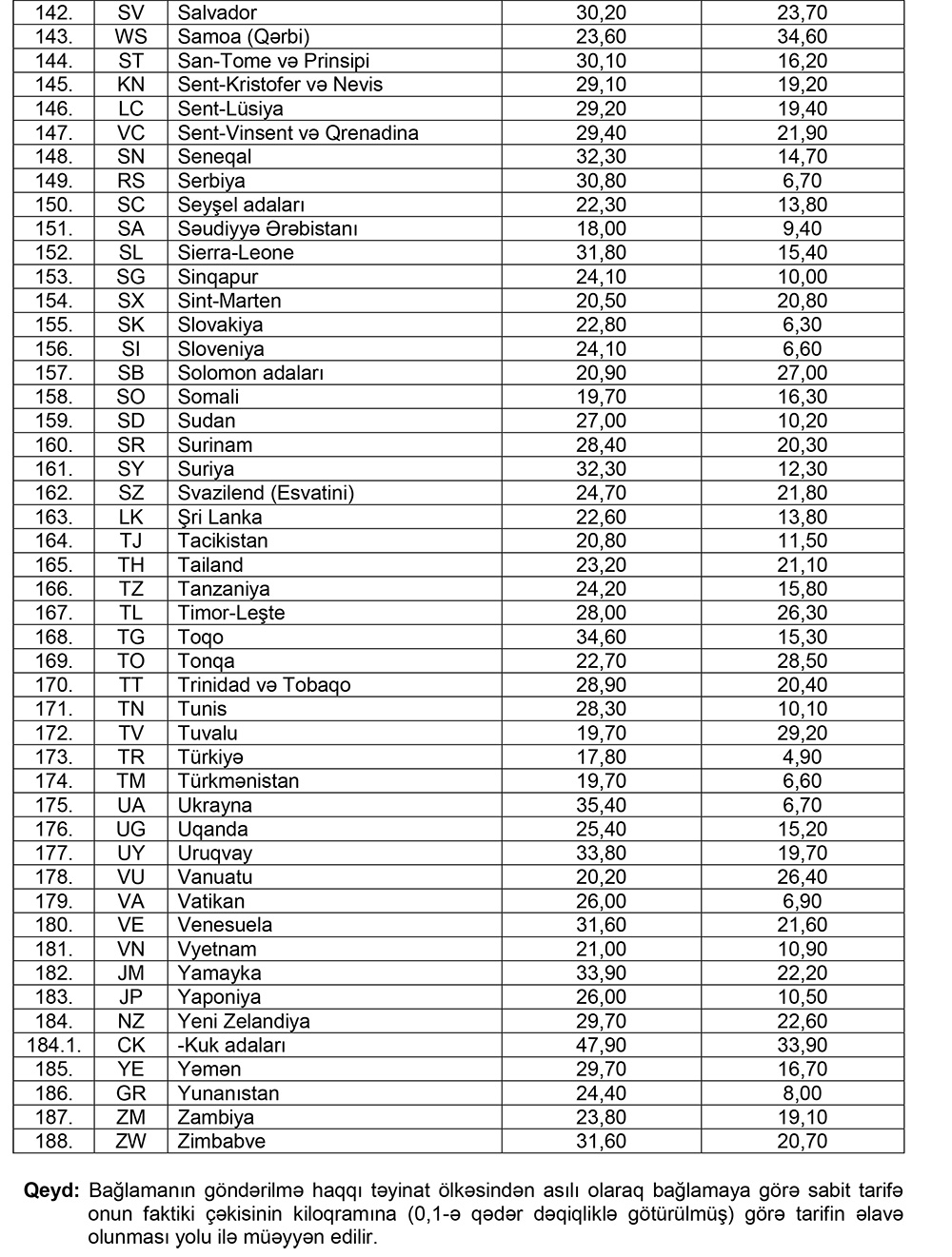 Universal poçt rabitəsi xidmətlərinin yeni tarifləri açıqlandı