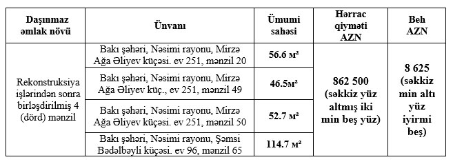 Birləşdirilmiş 4 mənzilin qiyməti 2 milyondan 862 min manata düşdü