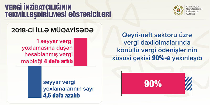 Qeyri-neft sektoru üzrə vergi daxilolmalarında könüllü vergi ödənişlərinin xüsusi çəkisi 90%-ə yaxınlaşıb.