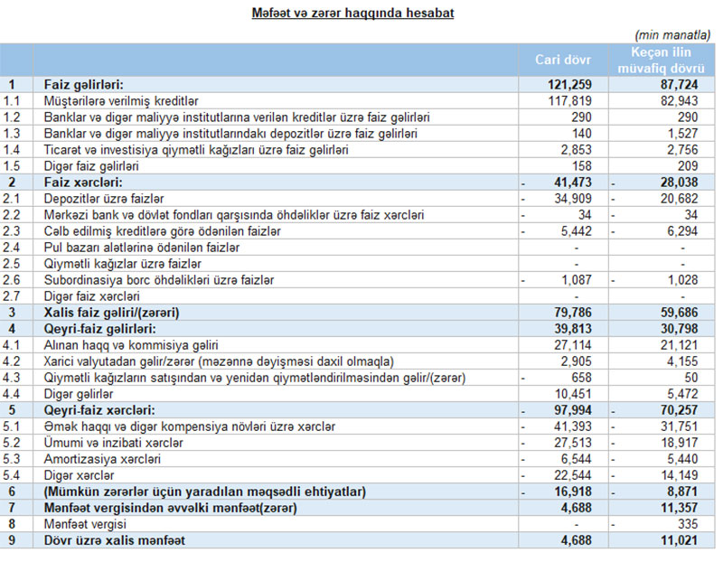 Ötən il “Unibank”ın cəmi əməliyyat gəlirləri cəmi əməliyyat xərclərini üstələdiyindən 21 milyon 606 min manat əməliyyat mənfəəti yaranıb. Bank mümkün zərərlər üçün yaradılan ehtiyatlara 16 milyon 918 min manat ayırdığından ötən ili 4 milyon 688 min manat xalis mənfəət ilə başa vurub.