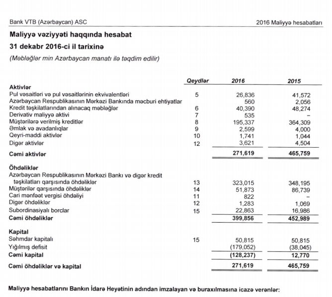 "Bank VTB (Azərbaycan)" ASC Beynəlxalq maliyyə hesabatları standartları (BMHS) üzrə ötən ilə olan hesabatını dərc edib.