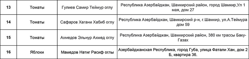 Таким образом, на сегодняшний день возможны отправки томатов с 226 азербайджанских предприятий и 1 кооператива, яблок – с 77 предприятий.