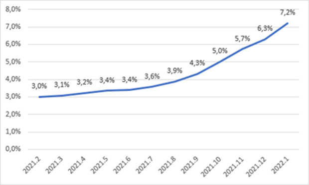 “Veysəloğlu Pərakəndə İndeksi”nə görə, 2022-ci ilin yanvar ayı üzrə müştərilərin ən çox aldığı məhsulların qiymətində keçən ilin yanvar ayına nisbətən 12,8% artım müşahidə edilib. Belə ki, tez köhnələn qida məhsullarının qiymətində keçən ilin yanvar ayına nisbətən 14,8% artım, quru, dondurulmuş qida məhsullarının, şirniyyat və spirtsiz içkilərin qiymətində 12,8% artım, spirtli içkilər və tütün məmulatlarının qiymətində isə 9,3% artım izlənilib.