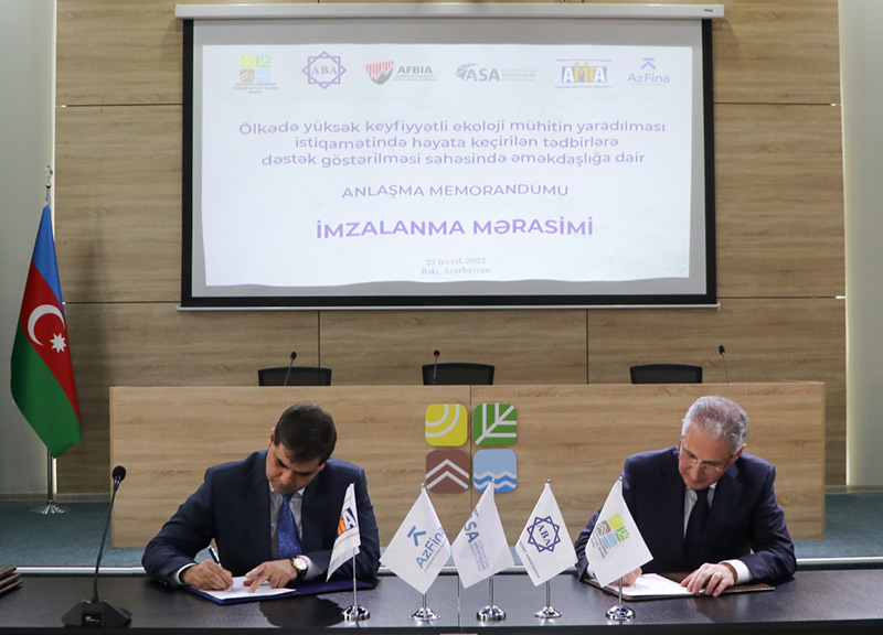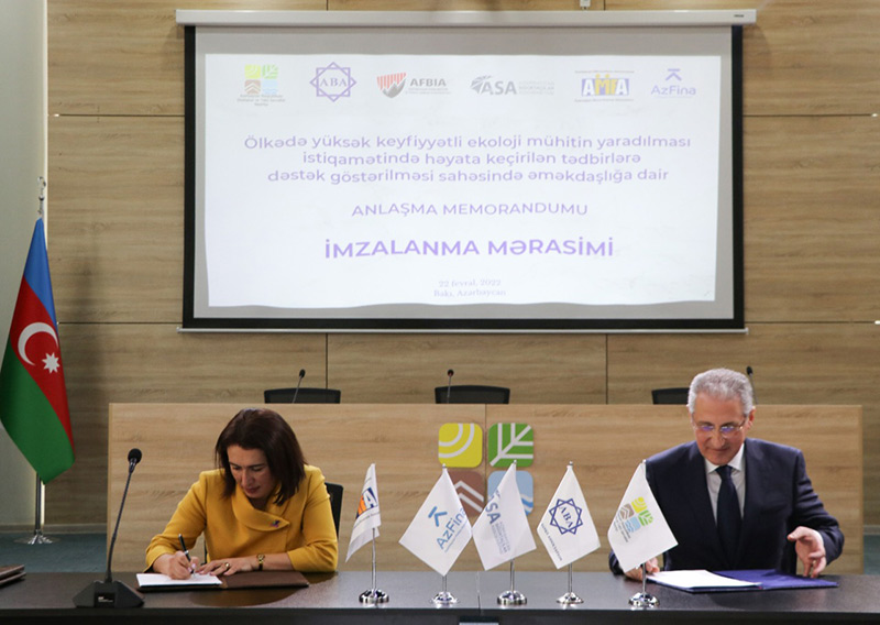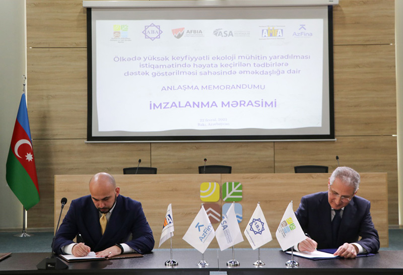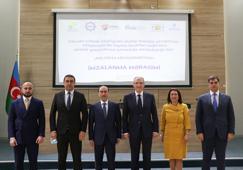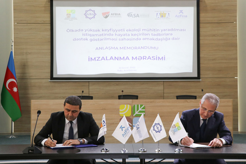 Ölkədə fəaliyyət göstərən maliyyə assosiasiyaları ilə Ekologiya və Təbii Sərvətlər Nazirliyi arasında Ətraf mühit sahəsində əməkdaşlığa dair Anlaşma Memorandumu imzalanıb22 fevral 2022-ci il tarixində Azərbaycan Mərkəzi Bankının təşəbbüsü ilə ölkədə fəaliyyət göstərən maliyyə Assosiasiyaları - Azərbaycan Banklar, Azərbaycan Fintex, Azərbaycan Mikromaliyyə, Azərbaycan Sığortaçılar və Azərbaycan Fond Bazarı İştirakçılarının Assosiasiyaları ilə Ekologiya və Təbii Sərvətlər Nazirliyi arasında hər biri ilə ayrı-ayrılıqda Anlaşma Memorandumu imzalanıb.