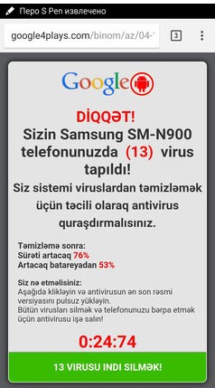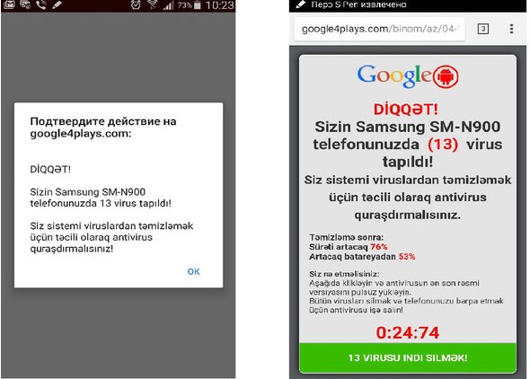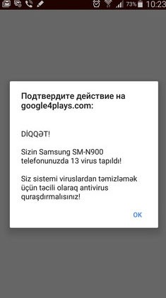 "Bu il həyat yoldaşıma 8 mart bayramı ilə əlaqdar hədiyyə olaraq smartfon aldım, amma telefonu ona martın 7-də verdim. O, telefonunun menyusunu tənzimləyən zaman ekrana "Google Play" işarəli simgə çıxıb və guya telefonda müəyyən sayda virus aşkarlandığına dair bildiriş edilib. Təbii ki, o, telefonu viruslardan təmizləmək üçün bildirişə tıklayıb. Həyat yoldaşım "Google Play"ın hansısa tətbiqetməsinin yüklədiyindən əmin olub", - zərərçəkən bildirib.
