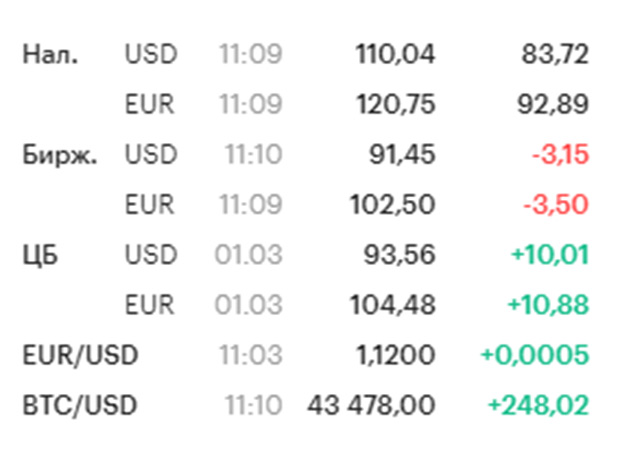 Rusiya Federasiyası Mərkəzi Bankının Qərbin sanksiyalarına cavab tədbirləri fonunda rubl ABŞ və Avropa valyutalarına qarşı möhkəmlənir.Moskva birjasının ticarət məlumatlarına görə, dollar 90 rubldan aşağı düşüb. Moskva vaxtı ilə saat 10:24-də ABŞ valyutası 89,085 rubl dəyərində olub. Sonra Dollar bir qədər bahalaşaraq 91 rublu keçib.
