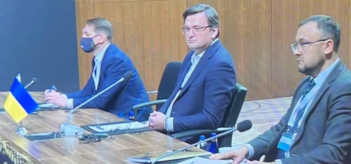 Lavrov və Kuleba arasında keçirilən görüşün əvvəlindən kadrlar.