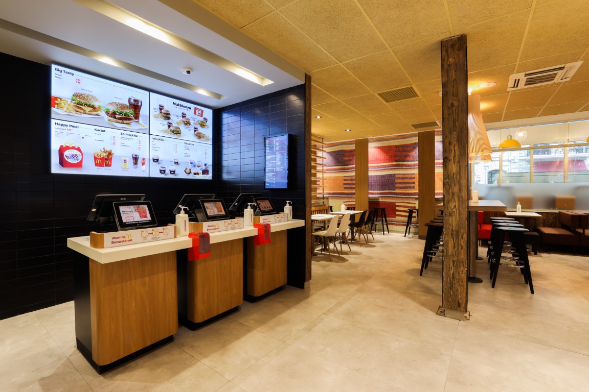 Artıq qonaqlar özünəxidmət köşkündə və ya kassada yeməyi sifariş verdikdən sonra masa arxasına keçərək sifarişini gözləyir(®) Bakının mərkəzində, Fəvvarələr Meydanında yerləşən Azərbaycanın ilk “McDonald’s” restoranı yenidən qapılarını qonaqların üzünə açıb.