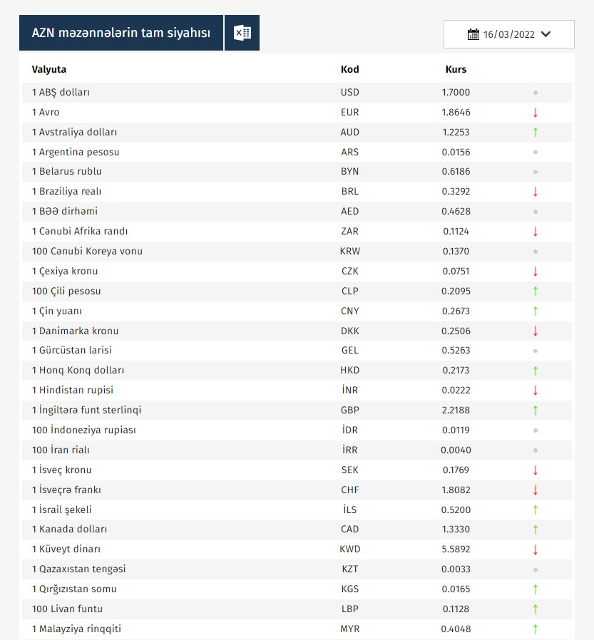 Dolların bazar ertəsi üçün rəsmi məzənnəsi müəyyən olunub