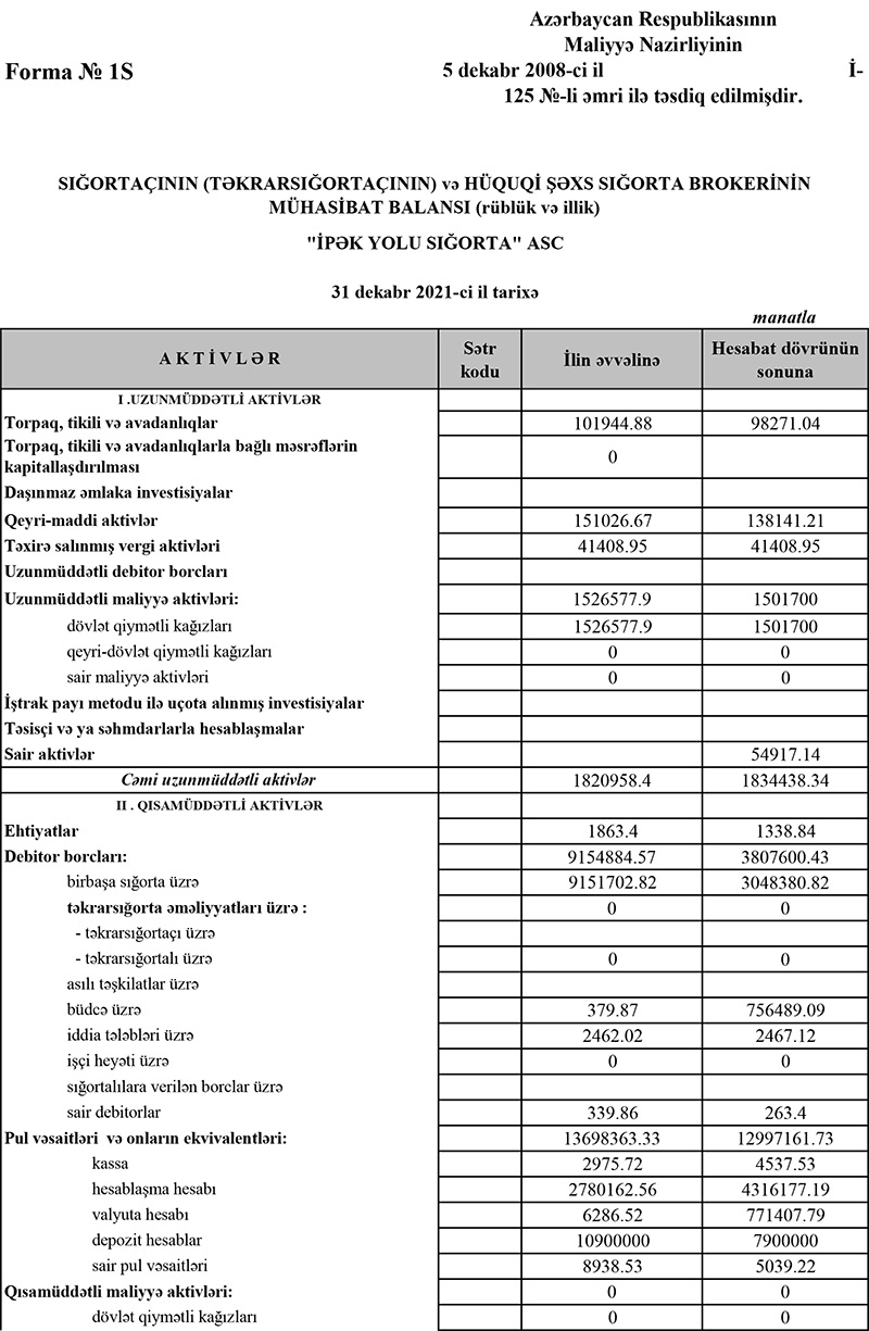 “İpək Yolu Sığorta” ASC 2021-ci ili 972 min manat xalis mənfəət ilə başa vurub.