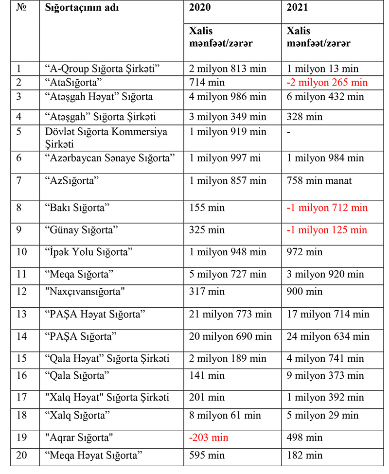 Sığorta şirkətlərindən 16-sı mənfəət, 3-ü zərər açıqladı - SİYAHI, ADLARI