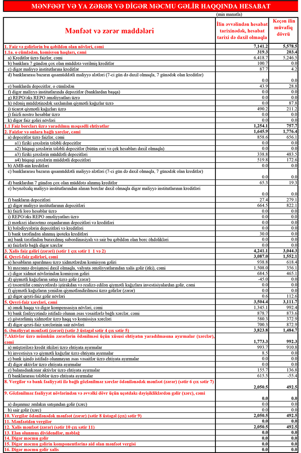 Təqdim edilən maliyyə nəticələrinə əsasən Bankın xalis mənfəəti ötən ilin 1-ci rübü ilə müqayisədə 4 dəfədən çox artaraq 2 milyon manatı keçmişdir.
