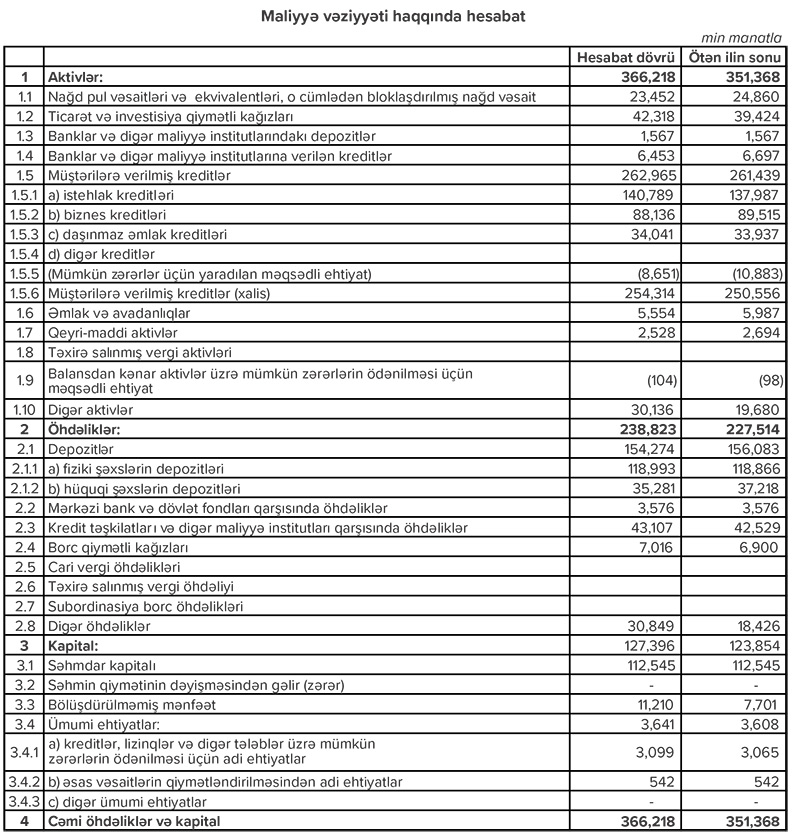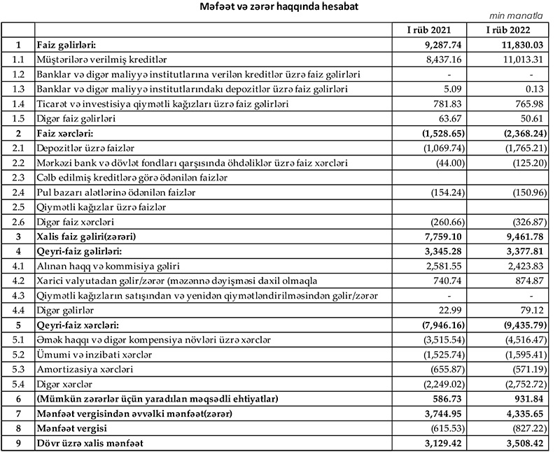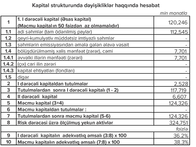 Bankdan Marja-ya daxil olmuş press-relizdə bildirilir ki, bank keçən ilin birinci rübü ilə müqayisədə bu il 12.11 % artım əldə etdib.