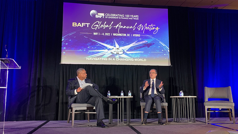 Hibrid formatda – həm onlayn, həm canlı şəkildə ABŞ-ın Vaşinqton şəhərində təşkil olunan BAFT-ın builki Qlobal Toplantısı qurumun 100 illik yubileyinə həsr olunub. Tədbir beynəlxalq ekspertlərin çıxışları, müxtəlif mövzularda sessiyalar və iştirakçılar arasında fikir mübadilələrinin aparılması üçün ikitərəfli görüşlərlə yadda qalıb. Gündəmdə olan mövzular sırasına qlobal iqtisadiyyat və gələcək fəaliyyət, rəqəmsallaşma və texnologiya, dünya iqtisadiyyatına və onun sabitliyinə təsir edən yeni çağırışlar, ekoloji, sosial və korporativ idarəetmə və digər məsələlər daxil edilib.