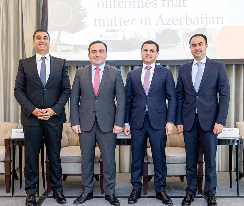 Azərbaycandakı şirkət rəhbərlərinin 62%-i sağlamlıq risklərini, daha sonra isə geosiyasi münaqişələri (48%) həll olunmalı əsas prioritetli məsələ kimi nəzərdən keçirirlər.4 may 2022-ci il tarixində PwC Azərbaycan “Four Seasons Hotel Baku”-da “Azərbaycanda 5-ci İllik CEO Sorğusunun” təqdimatını keçirib.