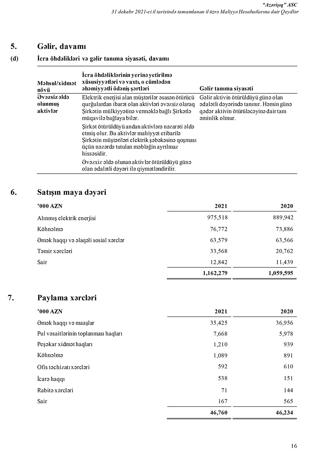 Ötən il satışın maya dəyərinin 975 milyon 518 min manatını alınmış elektrik enerjisinin dəyəri təşkil edib.