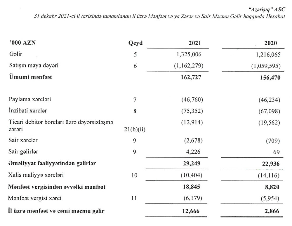 Elektrik enerjisinin sakinlərə və hüquqi şəxslərə ötürülməsi və paylanması ilə məşğul olan "Azərişıq" ASC 2021-ci ili 12 milyon 666 min manat xalis mənfəət ilə başa vurub. Halbuki, ASC 2020-ci ili 2 milyon 866 min manat xalis mənfəət ilə bağlamışdı. Beləliklə, 2020-ci illə müqayisədə 2021-ci ildə "Azərişıq" şirkətinin xalis mənfəəti 4,4 dəfə artıb.