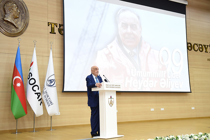 Bakı Ali Neft Məktəbinin rektoru Elmar Qasımov Ümummilli Liderin mənalı həyat yolundan, zəngin və çoxşaxəli irsindən danışaraq vurğulayıb ki, ulu öndər Heydər Əliyevin əsasını qoyduğu siyasətin Prezident İlham Əliyev tərəfindən zamanın tələblərinə, dövrün ictimai-siyasi qanunauyğunluqlarına müvafiq şəkildə davam etdirilməsi nəticəsində milli tərəqqinin Azərbaycan nümunəsi adlı fenomen yaranıb.