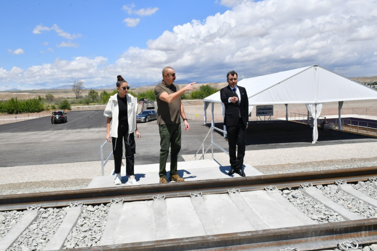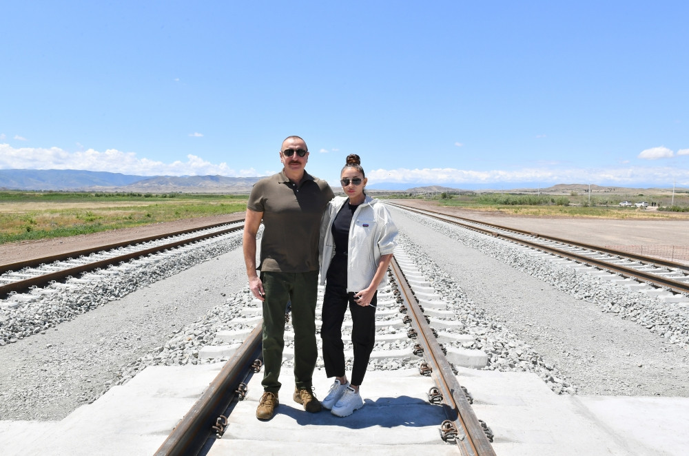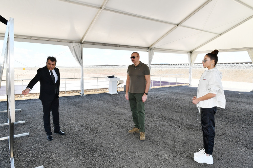 Dövlət başçısı və birinci xanım Horadiz-Ağbənd dəmir yolu xəttinin Cəbrayıl rayonu ərazisində Soltanlı stansiyasının təməlqoyma mərasimində iştirak ediblər.