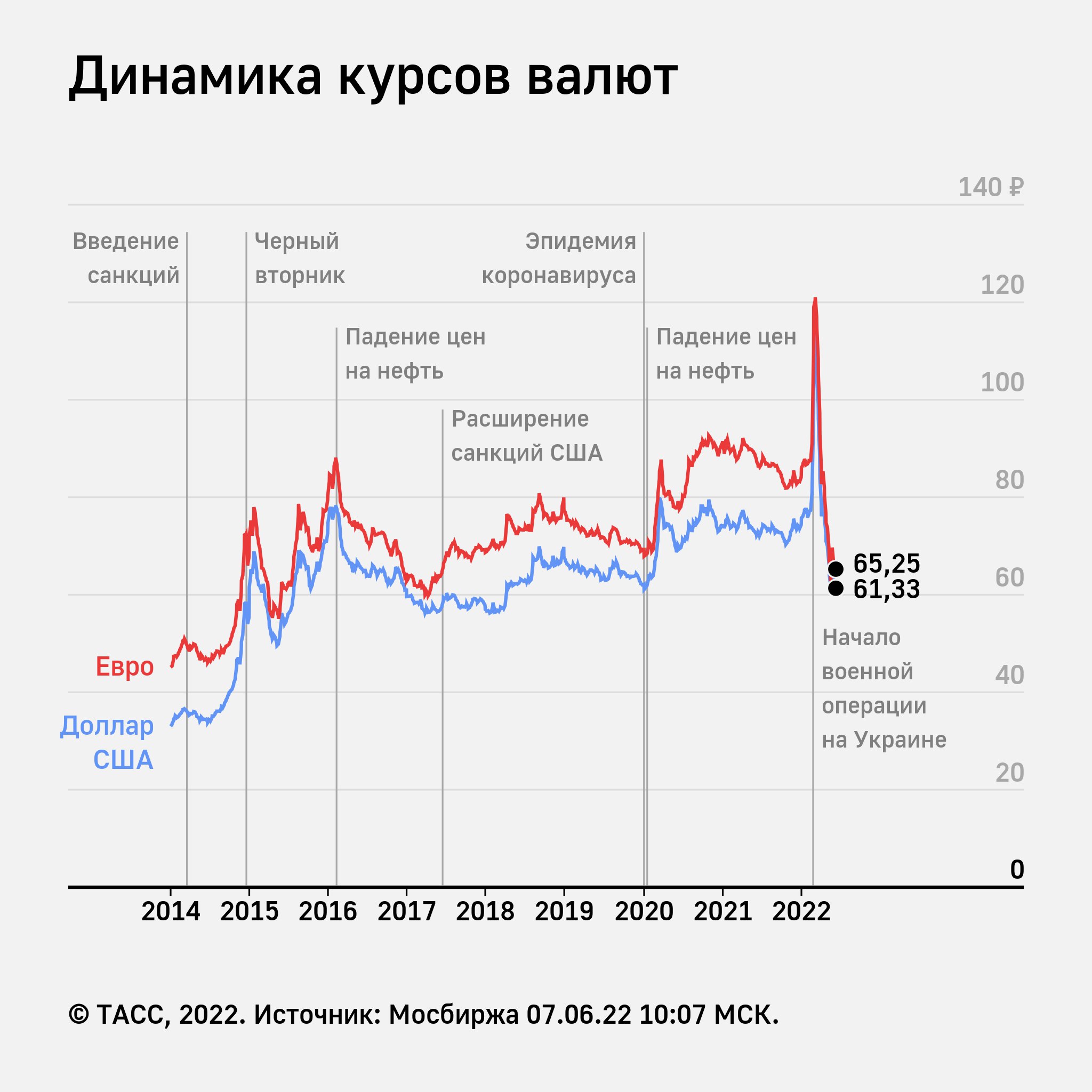 Marja xəbər verir ki, dolların məzənnəsi 61,33 rubla, avronun məzənnəsi isə 65,25 rubla qədər yüksəlib.