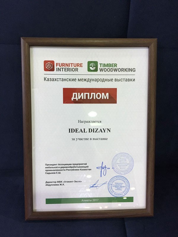 İDEAL DİZAYN ofis mebeli brendi 14 – 17 iyun 2017-ci il tarixlərində Qazaxıstan respublikasının Almata şəhərində keçirilmiş “Mebel və İnteryer - 2017” XXII Beynəlxalq sərgisində iştirak edib.